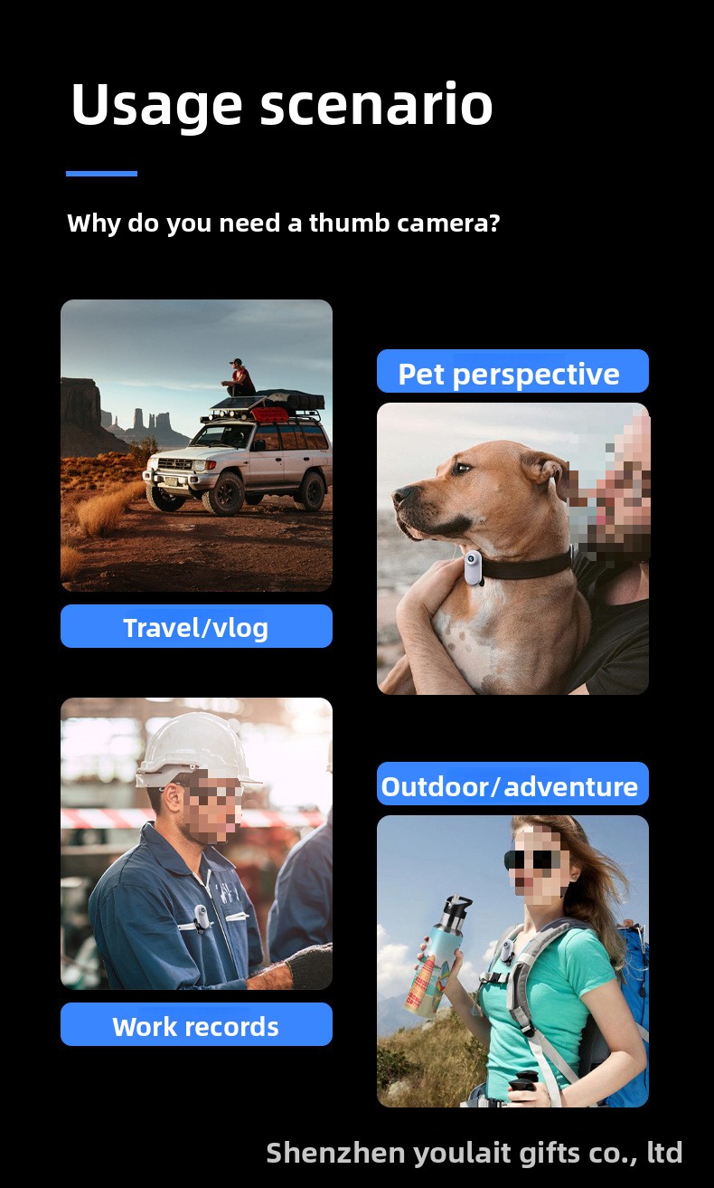 Miniature Design: Compact thumb-sized camera for easy portability and discreet use
